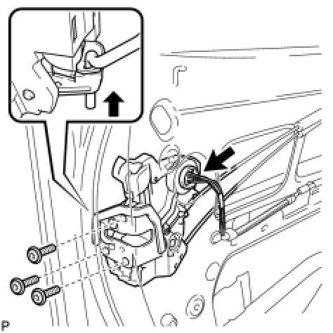 (c) Move the lever back in the direction indicated by the arrow in the illustration to lock the door outside handle assembly.