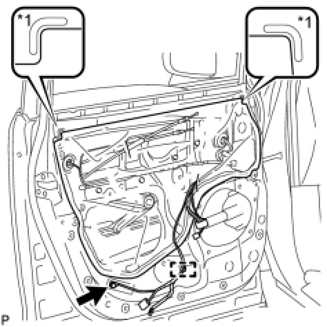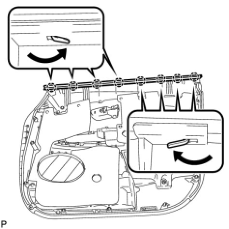 (a) Install the front door lock open rod as indicated by the arrows, in the order shown in the illustration.