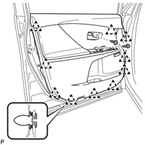(a) Engage the 7 clips and install the front door panel protector.