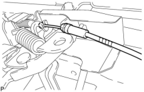 (b) Pull the hood lock control cable assembly from the engine compartment and remove it.