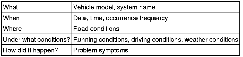 * In troubleshooting, confirm that the problem symptoms have been accurately identified. Preconceptions should be discarded in order to make an accurate judgment. To clearly understand what the problem symptoms are, it is extremely important to ask the customer about the problem and the conditions at the time the malfunction occurred.