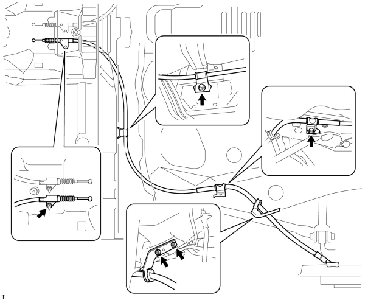 (a) Move the No. 2 parking brake cable assembly and No. 3 parking brake cable assembly as shown in the illustration to remove the parking brake equalizer.