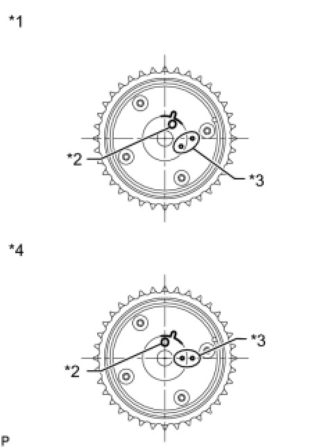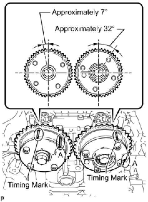 (c) Check that the timing marks of the camshaft timing gears are as shown in the illustration.