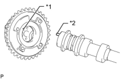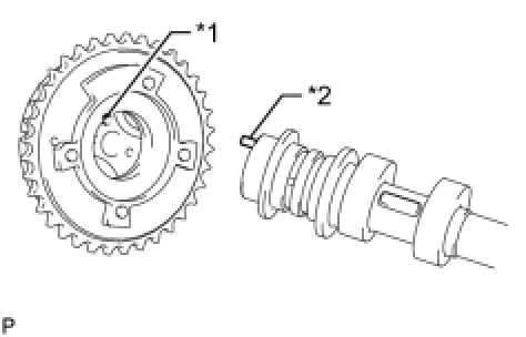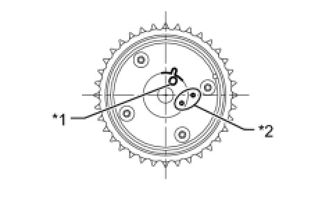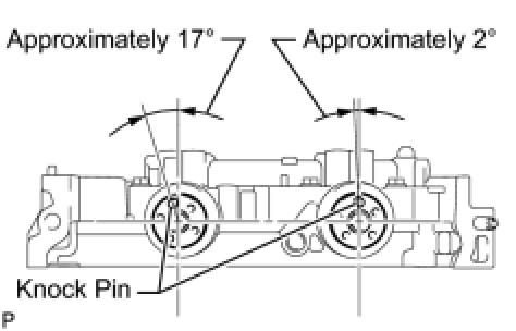 (c) Position the knock pin of the No. 1 and No. 2 camshafts as shown in the illustration.