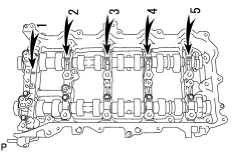 (a) Confirm the marks and numbers on the camshaft bearing caps and place them in their proper positions and directions.