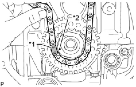 (a) Place the chain onto the camshaft timing gears and crankshaft timing sprocket.