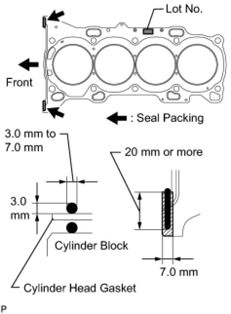 Apply at least 20 mm (0.787 in.) of seal packing from the inside edge of the protrusion of the cylinder block.