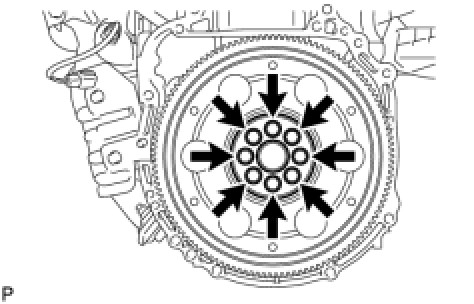 (b) Remove the 8 bolts, front drive plate spacer, drive plate and ring gear sub-assembly, and rear drive plate spacer.