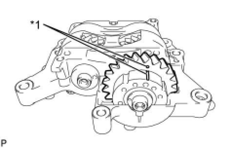 (2) Rotate the balance shaft driven gear of the No. 1 balance shaft counterclockwise to align the alignment mark of the balance shaft driven gear with the alignment mark of the balance shaft damper cover.