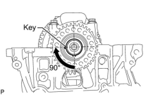 (a) Rotate the crankshaft clockwise so that the crankshaft key is at the position 90° from the bottom as shown in the illustration.