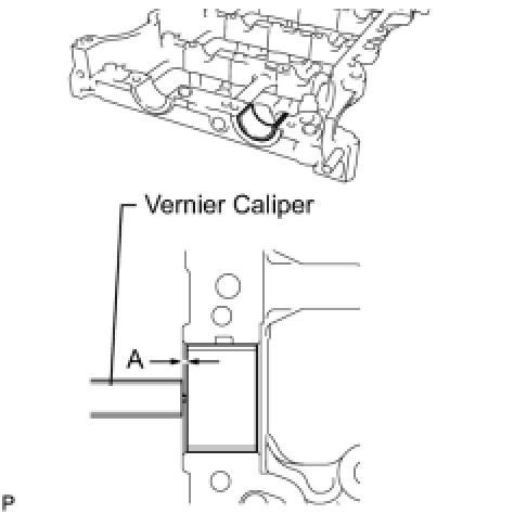(c) Using a vernier caliper, measure the distance between the camshaft housing edge and the camshaft bearing edge.