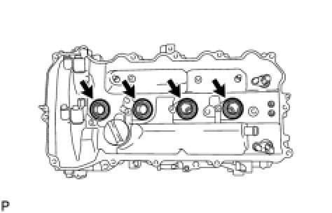(c) Install the 4 plug tube gaskets to the cylinder head cover.