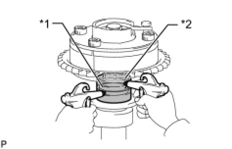 (a) Secure the No. 2 balance shaft in place, and then using a dial indicator, measure the backlash of the No. 1 and No. 2 balance shafts as shown in the illustration.