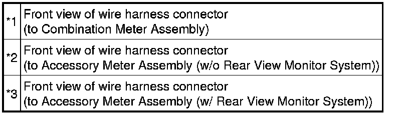The accessory meter assembly uses this circuit to communicate with the combination meter assembly via the direct line. The accessory meter assembly uses this circuit to receive the drive monitor switch signals from the combination meter assembly via the direct line and multi-information display signal from each ECU through the combination meter assembly via the direct line.