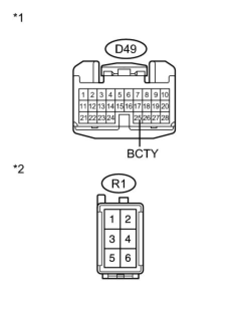 (1) Disconnect the D49 main body ECU (driver side junction block assembly) connector.