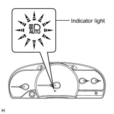 (b) Check that the headlight beam level control indicator light in the combination meter assembly comes on for approximately 3 seconds and then goes off when the ignition switch is turned to ON.