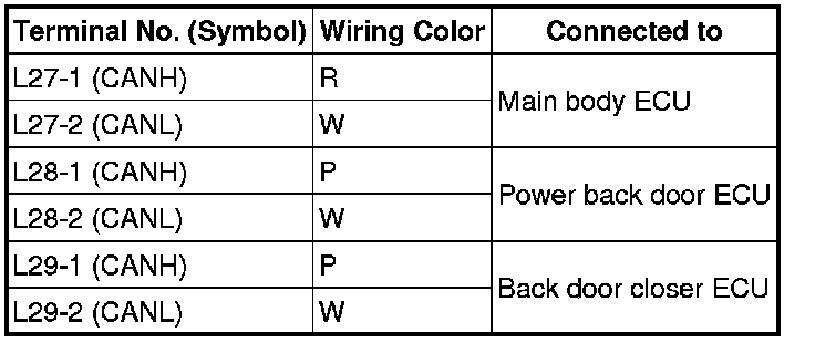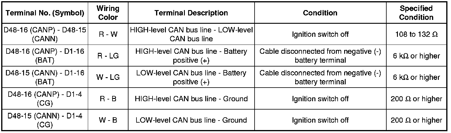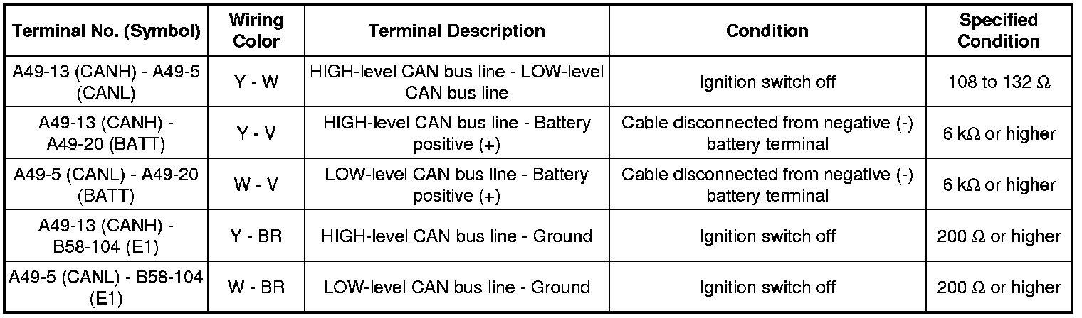 * Turn the ignition switch off before measuring the resistances between CAN bus main wires and between CAN bus branch wires.