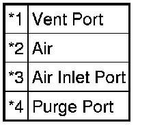 (1) With the purge port closed, blow 1.67 kPa (0.017 kgf/cm2, 0.24 psi) of air into the vent port, and check that air flows from the air inlet port.