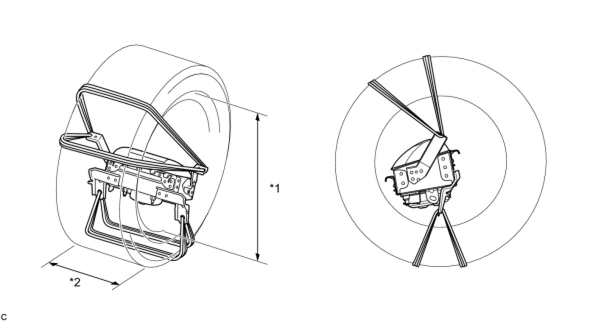 * Always tie down the front passenger airbag assembly with the airbag deployment side facing inside the tire as shown in the illustration.