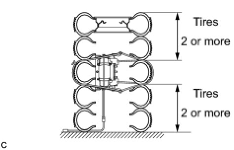 (1) Place at least 2 tires under the tire to which the front passenger airbag assembly is tied.