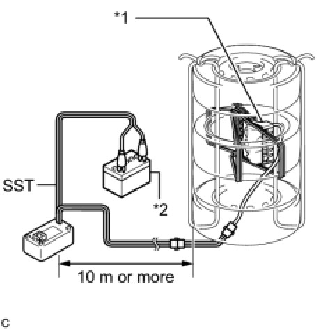 (2) Move SST at least 10 m (32.8 ft.) away from the airbag tied down to the tire.