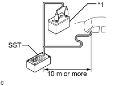 (4) Connect the red clip of SST to the positive (+) battery terminal and the black clip of SST to the negative (-) battery terminal.