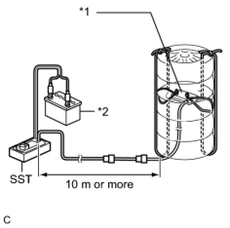 (2) Move SST at least 10 m (32.8 ft.) away from the airbag tied down to the tire.