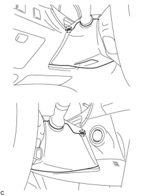 * An airbag or pretensioner may be activated by static electricity. To prevent this, be sure to touch a metal surface with your bare hands to discharge static electricity before performing this procedure.