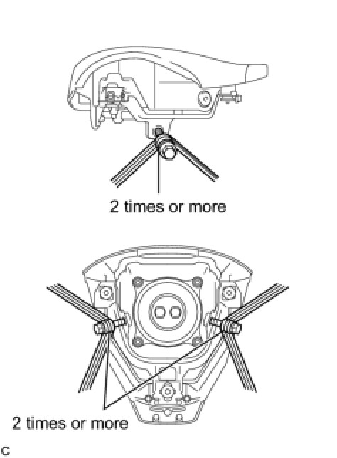 If the wire harness is too thin or an alternative object is used to tie down the steering pad, it may snap when the airbag is deployed. Always use a wire for vehicle use with an area of at least 1.25 mm2 (0.0019 in.2).