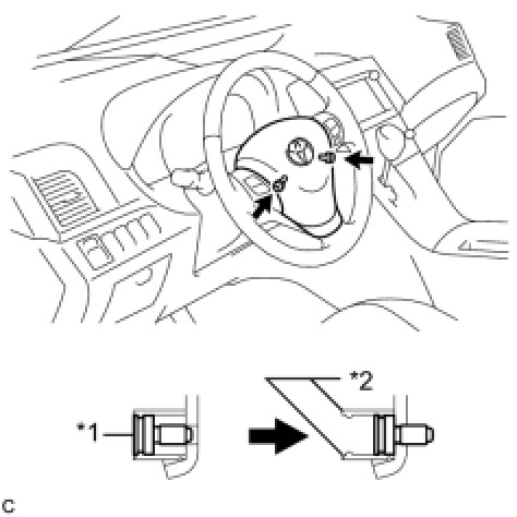 (e) Confirm that the circumference groove of each "TORX" screw fits in the screw case, and place the steering pad onto the steering wheel assembly.