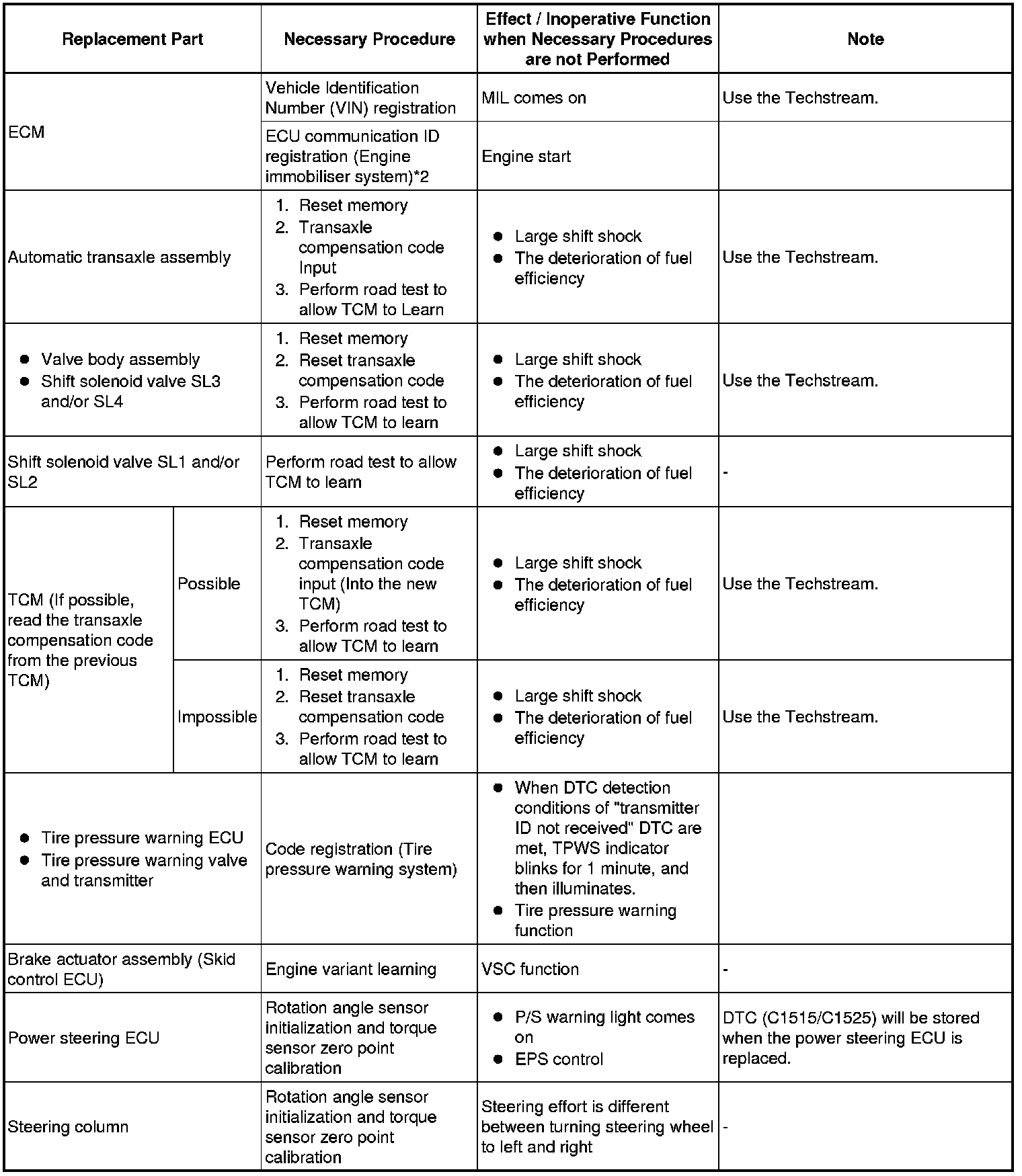 - The following procedures require the use of the Techstream: