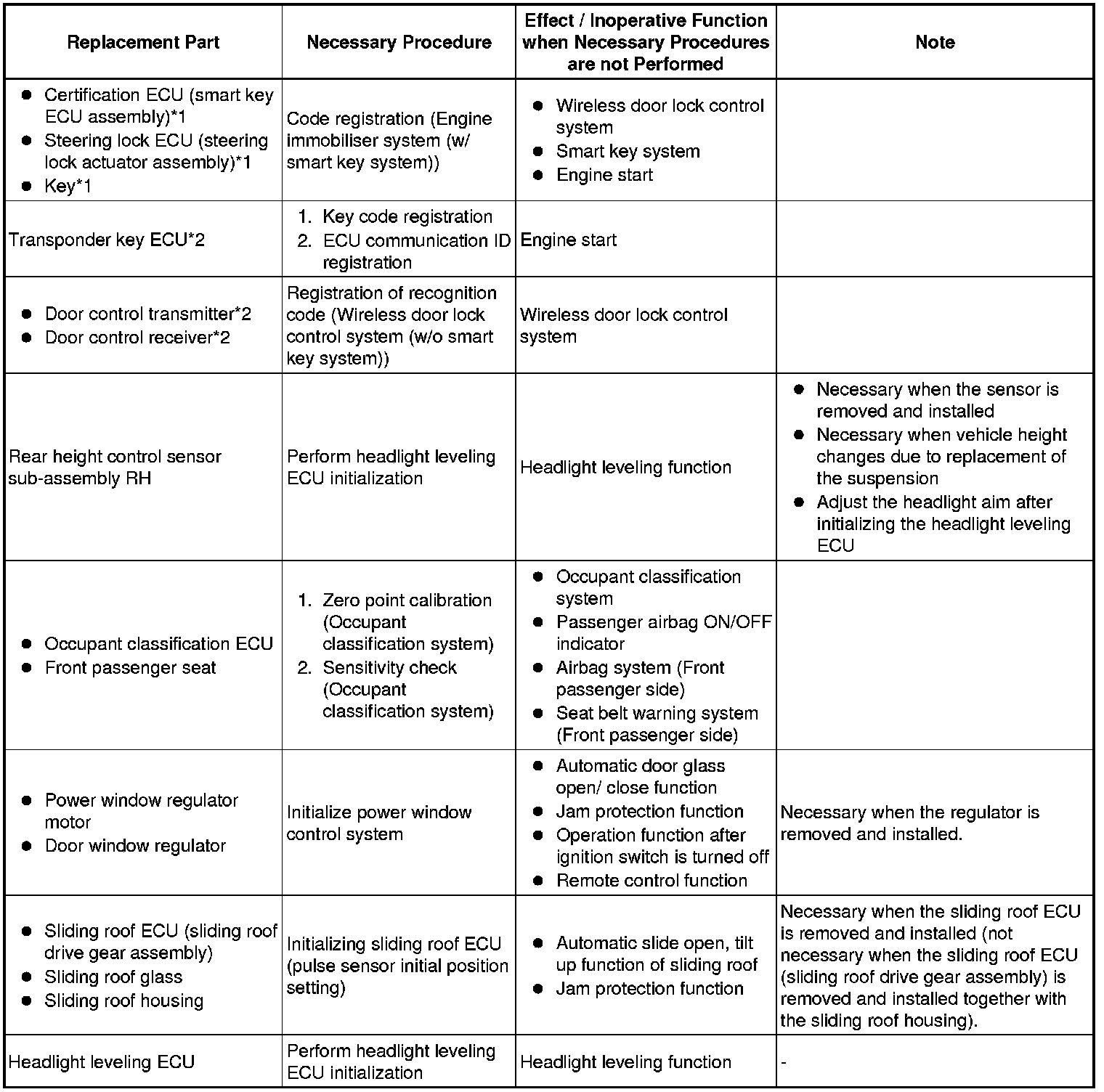 2. PROCEDURES NECESSARY WHEN ECU OR OTHER PARTS ARE REPLACED