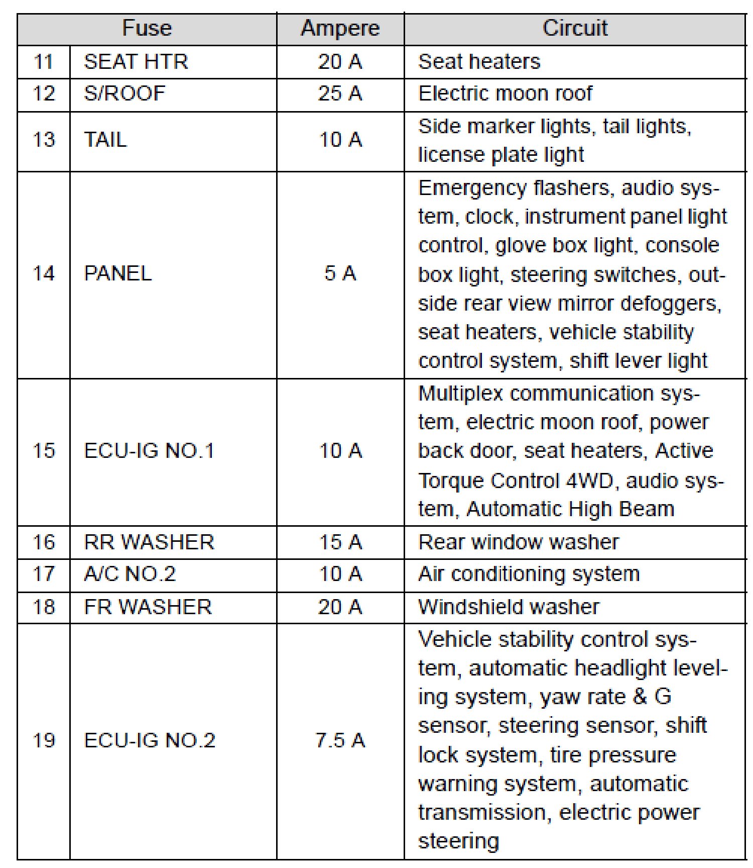Fuse Layout and Amperage Ratings