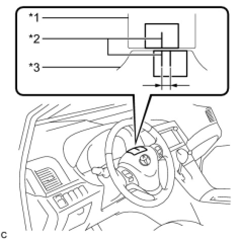 (6) Measure the distance between the 2 lines on the masking tape on the steering wheel.