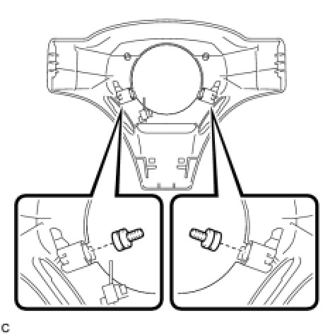 (a) Install the 2 steering pad attaching screws to the lower steering wheel boss cover.