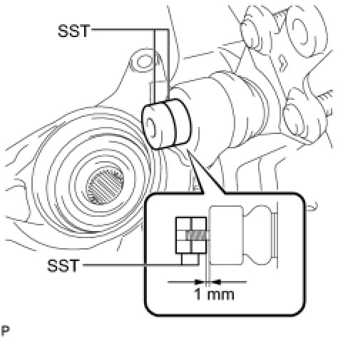 Check that the clearance measurement between SST and the front axle assembly is 1 mm (0.0394 in.).
