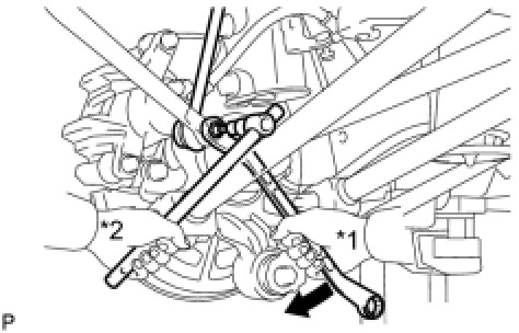 If the ball joint turns together with the nut, use a hexagon wrench (5 mm) to hold the stud bolt.