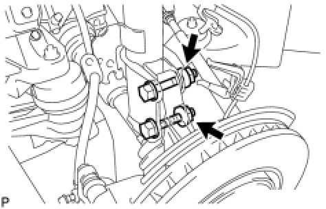 (b) Remove the 2 bolts and 2 nuts, and separate the front shock absorber with coil spring (lower side) from the steering knuckle.
