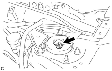 (a) Loosen the front suspension support nut of the front shock absorber.