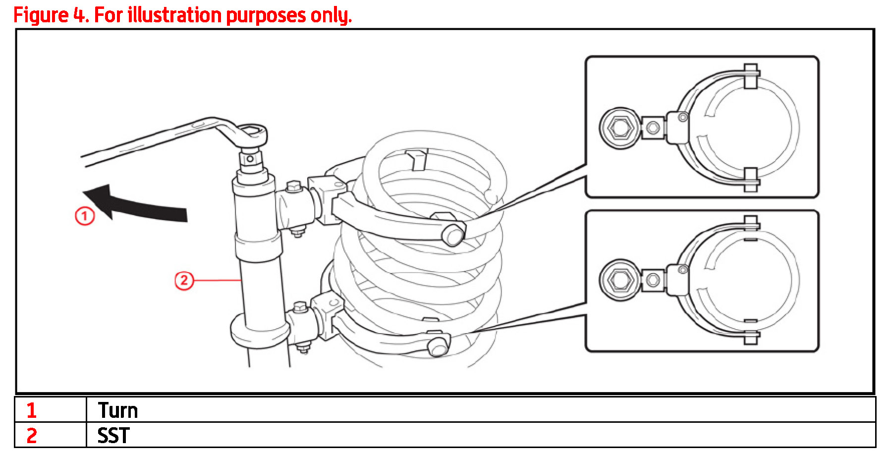 C. Temporarily compress the rear coil spring using SST BRNM-ST7200 and install the coil spring with SST onto the rear strut (refer to Figure 4).
