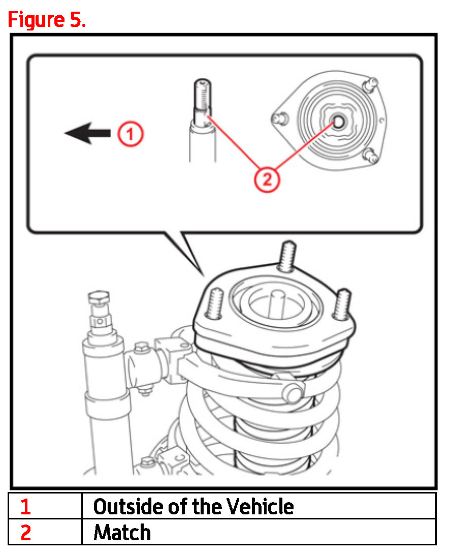 - Ensure the insulator is centered in the lower spring seat of the rear strut assembly (refer to Figure 2).