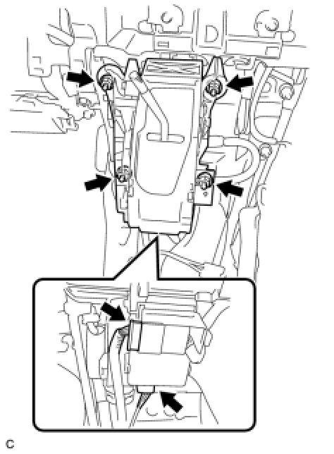 (g) Slide the slider of the transmission control cable in the direction indicated by the arrow and pull the lock piece outward.