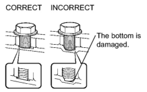 (1) When any marks due to interference are found on the end of a bolt for the torque converter clutch or on the bottom of a bolt hole, replace the bolt and torque converter clutch.