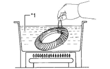 (d) After the moisture on the differential ring gear has completely evaporated, quickly install the differential ring gear to the differential case.