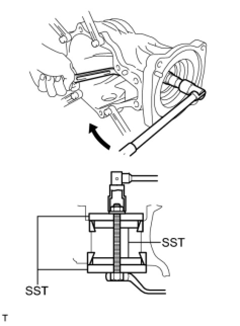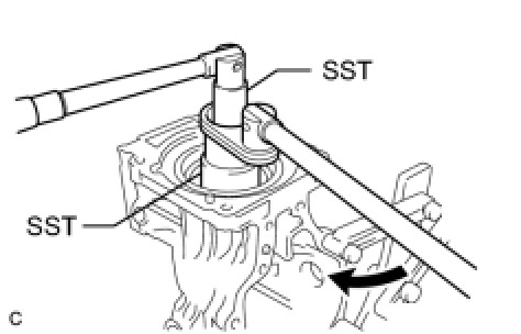 (c) Using SST, rotate the rear differential case sub-assembly forward and backward, and measure the backlash.