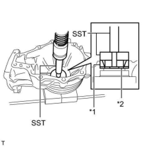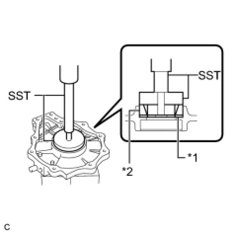 (a) Using SST and a press, install the rear differential case bearing (RH side inner race) to the rear differential case sub-assembly.