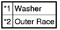 (1) If the result is not within the specified range, select rear differential side gear shaft plate washers that are thicker or thinner as necessary. Adjust the thickness of the left and right rear differential side gear shaft plate washers in equal increments. Then install the rear differential case bearing (outer race).