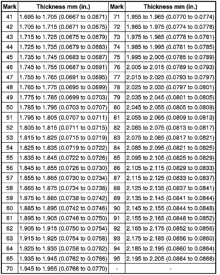 Refer to the table below and select 2 rear No. 1 differential side gear thrust washers which ensure that the backlash is within the specification.