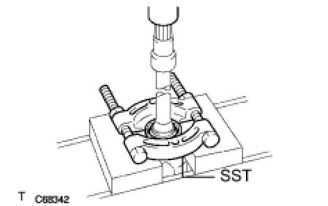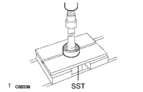 (b) Using SST and a press, remove the front drive shaft bearing.