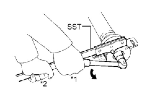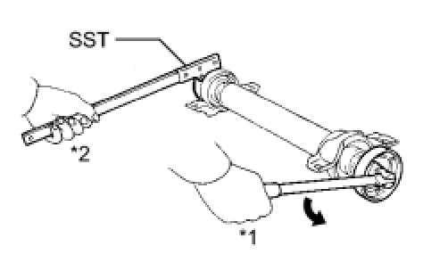 (b) Using SST to hold the universal joint flange, remove the nut and washer.